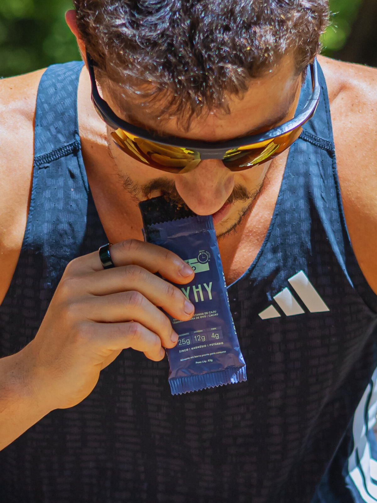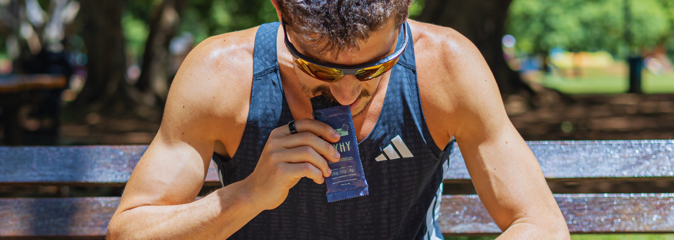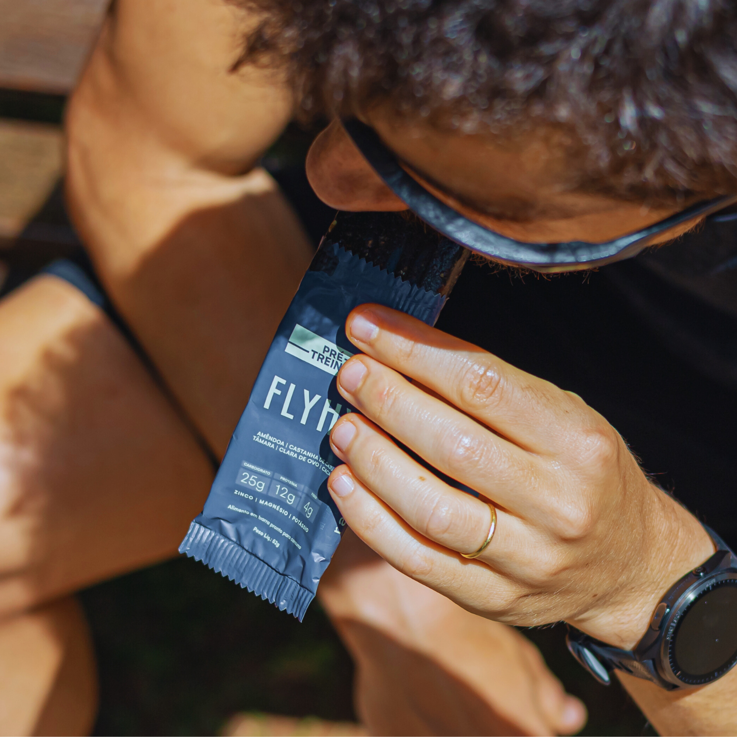 "No triatlo, tanto na transição para a bicicleta quanto durante o percurso, substituo o gel pelas barras FLYHY, ótimo para variar e me ajudam a manter o nível de energia estável."