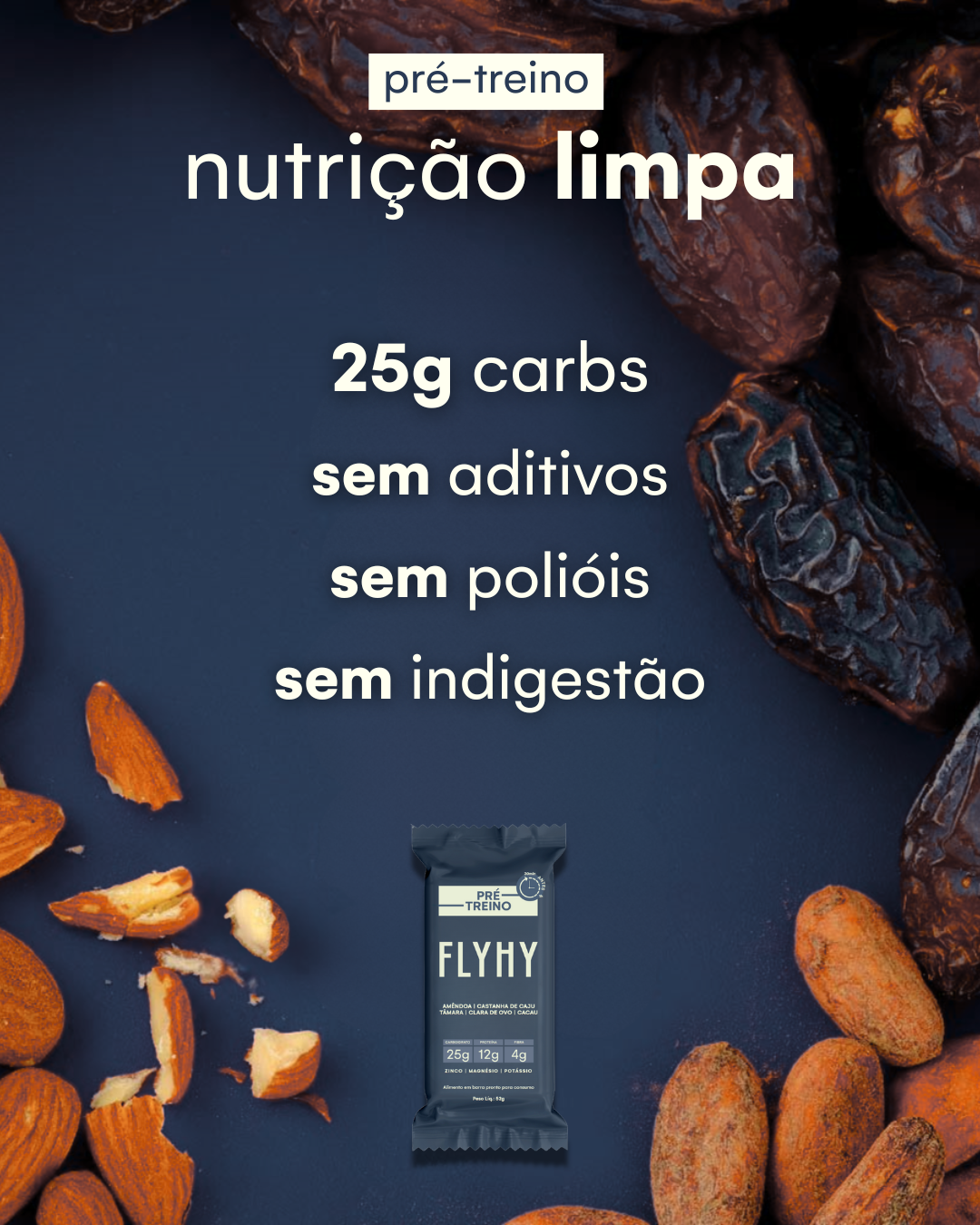A FLYHY Amêndoa & Castanha foi formulada no equilíbrio de 2:1 de carboidratos e proteínas – uma proporção extremamente eficiente para o pré-treino.